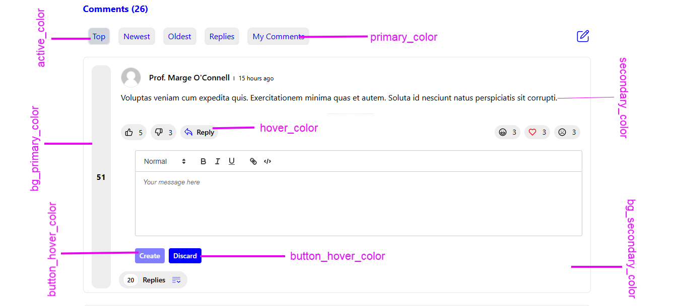 Most of the time, all you need is to adjust the colors of your commenting system to match your site's design. You can easily do this by updating the relevant keys in the configuration files. For advanced configurations, please refer to the [customization section](https://lakm.gitbook.io/commenter/advance/customization).